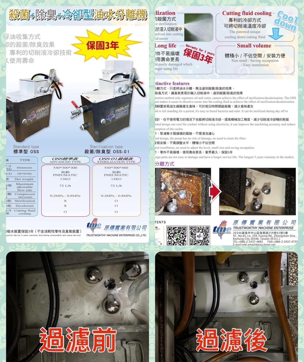原傳殺菌型油水分離機/使用後切削液臭味不見了