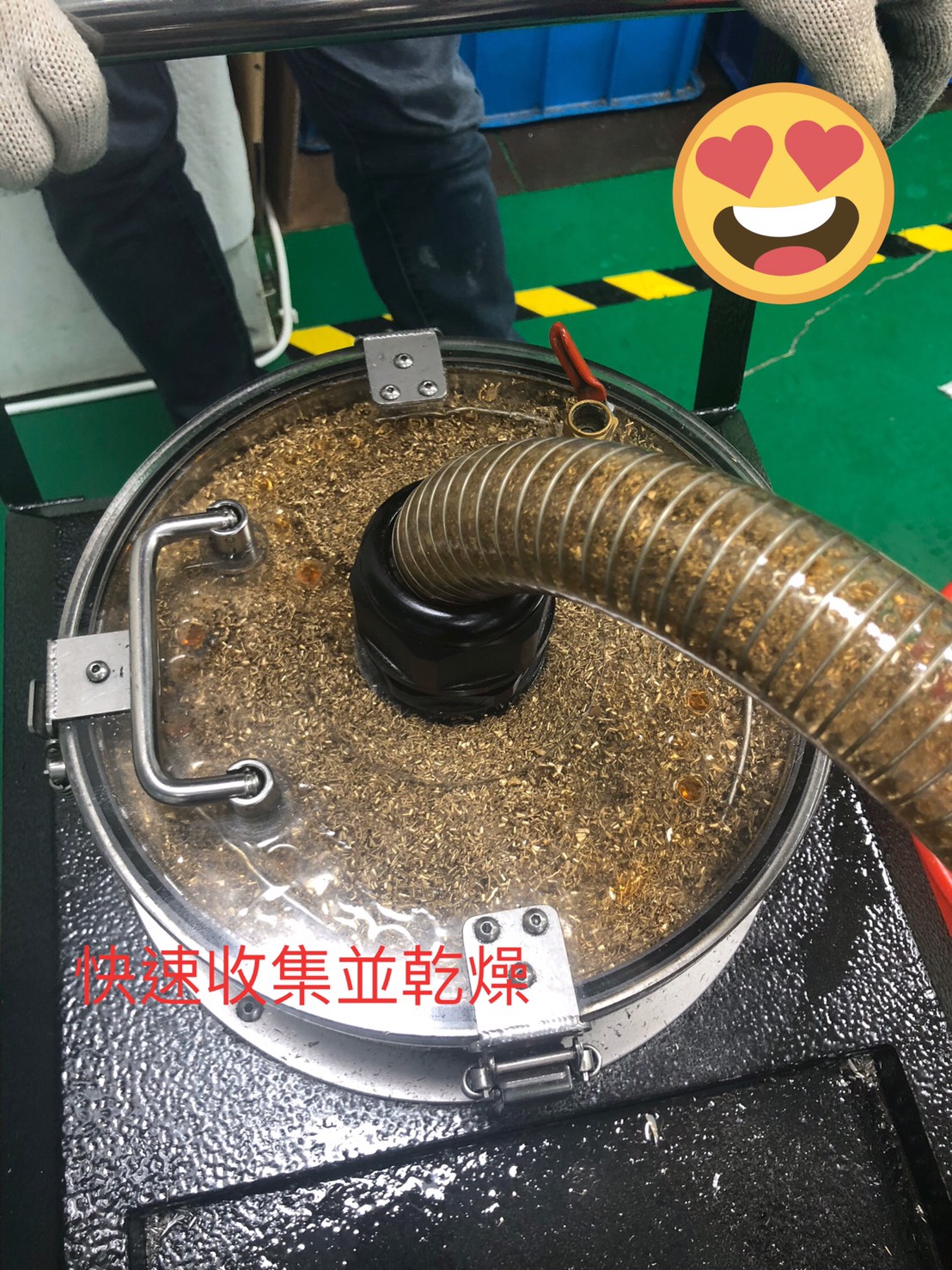 短短幾秒鐘 吸了滿滿一整桶水箱中銅屑
